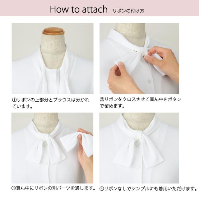 レディース リボン付き 2way 長袖ブラウス しわになりにくい オフィスシャツ ワイシャツ 事務服 就活 リクルート 面接 フォーマル 入学式 卒業式 ジョア 01190