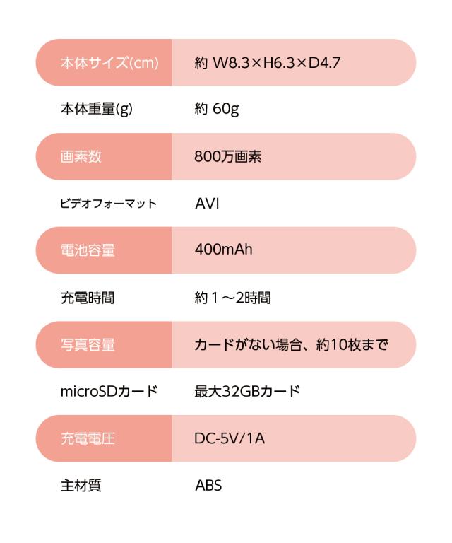 セット内容 :カメラ本体、microUSB充電ケーブル、ストラップ