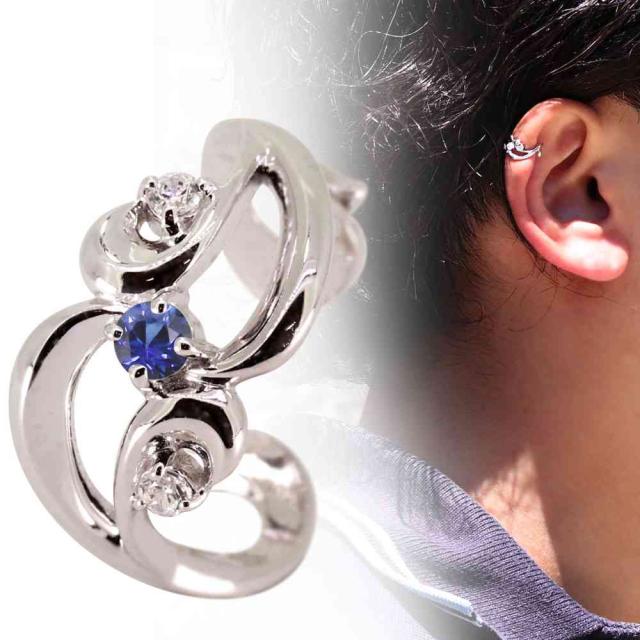 シルバー925 イヤーカフ メンズ 片耳用 サファイア イヤリング イヤカフ かっこいい 重ね付け