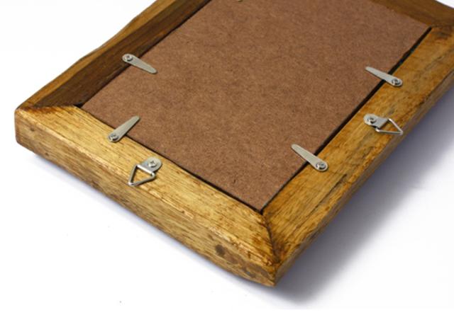 裏面には壁掛け用の金具が付いています。壁にフックなどを取り付け、壁掛け用金具に引っ掛けて飾ってください。