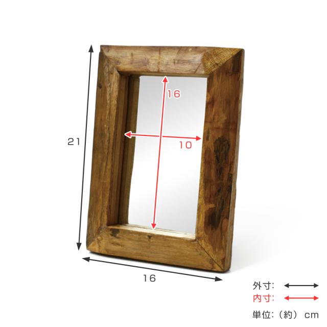 ミラー 幅16cm 廃材 ウッドミラー 木製 鏡 壁掛け( 鏡 壁掛 コンパクト Sサイズ ウッドフレーム 天然素材 古材 リビング インテリア アンティーク風 )