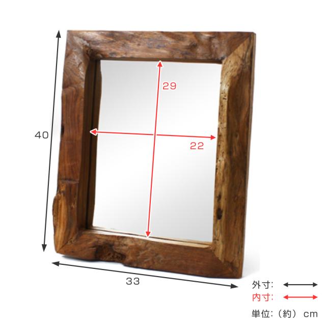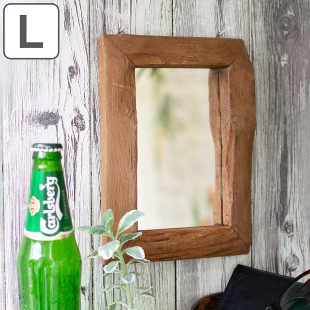 ミラー 幅33cm 廃材 ウッドミラー 木製 鏡 壁掛け( 鏡 壁掛 Lサイズ ウッドフレーム 天然素材 古材 リビング インテリア アンティーク風 )