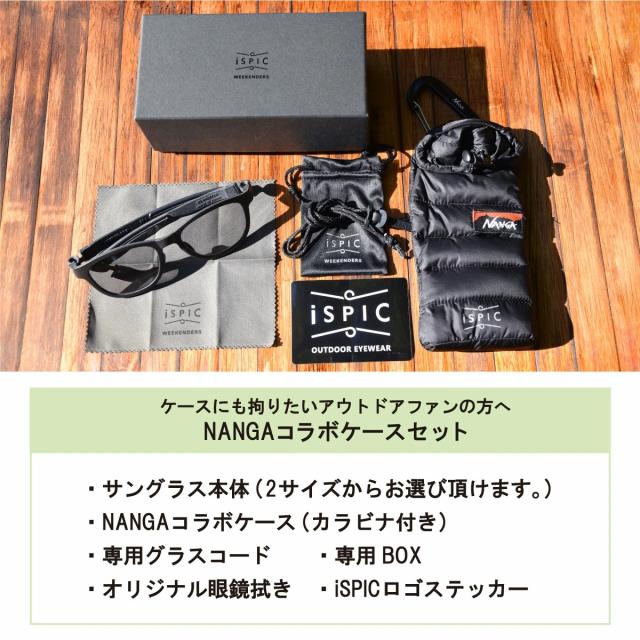 サングラス メンズ レディース uvカット 軽量 日本製 鯖江 ウェリントン 金属アレルギー対応 アウトドア NANGAコラボケース 専用グラスコード 専用メガネ拭き付き iSPIC ISW-N1