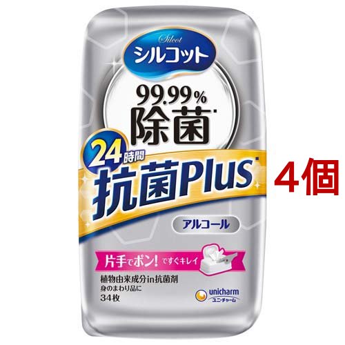 シルコット 99.99%除菌 ウェットティッシュ 抗菌Plus 本体(34枚入*4個セット)[ウェットティッシュ]