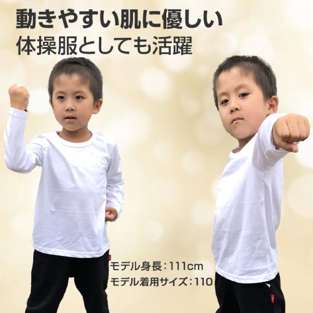2枚セット Tシャツ長袖 白 体育 体操服 綿100% 子供 キッズ 幼稚園 小学校 秋 春 冬 通気性 運動会 イベント 男女兼用 90 100 110 120 130 140 150 160 肌着
