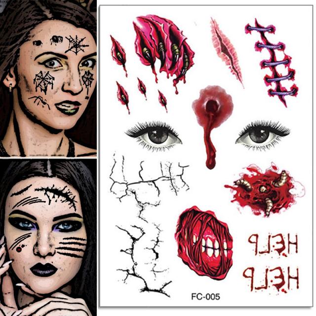 [水で貼る顔に貼る偽物の刺青 おもしろい ハロウィーン 特殊メイク 人気 流行 イベント スタッフ 店員 ハロウインパーティー 血液 血しぶき スリラー SNS 話題]