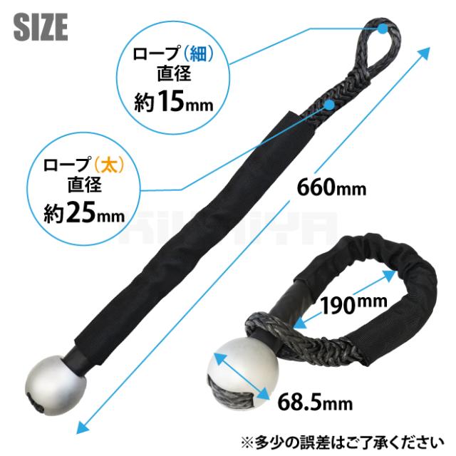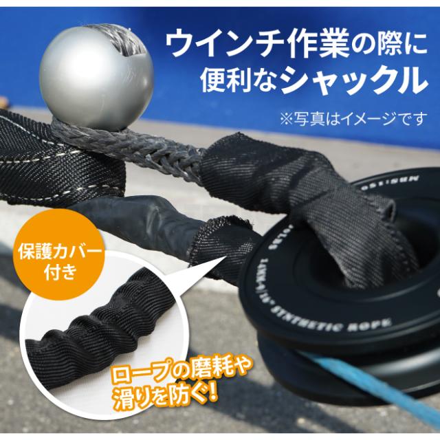 アルミボール付!ウインチ作業や牽引に便利なシャックル ●ウインチ作業や牽引の際に便利なシャックルです ●取付け、取外しも簡単 ●ロープの磨耗や滑りを防ぐ保護カバー付き ●アルミボールの結び目カバーがついているので、引っ張りに強く外れにくい ●結び目が変形しないのでウインチ作業が安定します ●金属製のシャックルに比べると軽量で持ち運びや保管も楽々 万が一破断してしまっても、軽量のため被害を最小に抑えられます ※破断荷重内でご使用ください 牽引ロープはこちら ★KIKAIYA リカバリーロープ 25mm×9M 品番:SOFS-A |