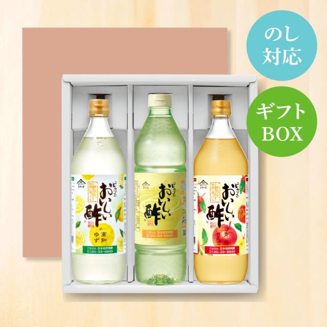 ギフト箱3本セット-14 おいしい酢 955ml×1本 高知ゆず 900ml×1本 青森りんご 900ml×1本 日本自然発酵 計3本 ギフト箱3本セット12 酢 調味料 飲む酢 冬のギフトセット お歳暮