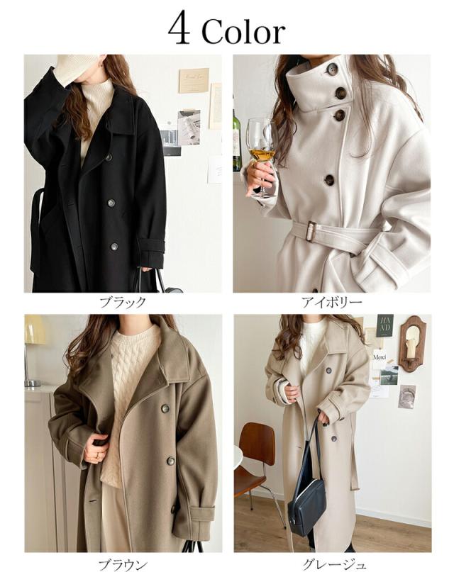 冬新作 クラシカルエルフ レディース アウター コート ロング丈 ニット モッサ スタンド 2way カラー ロングコート ゆったり オーバーシルエット 保温 厚手 暖か トレンチコート ボタン ポケット ウエスト ベルト 大きいサイズ 2022aw ce0420122
