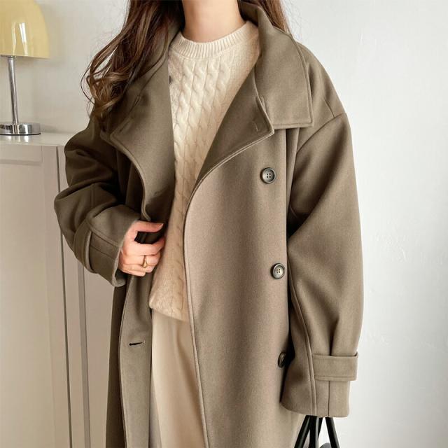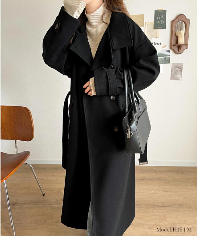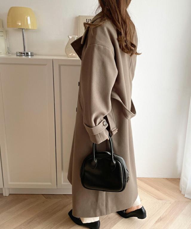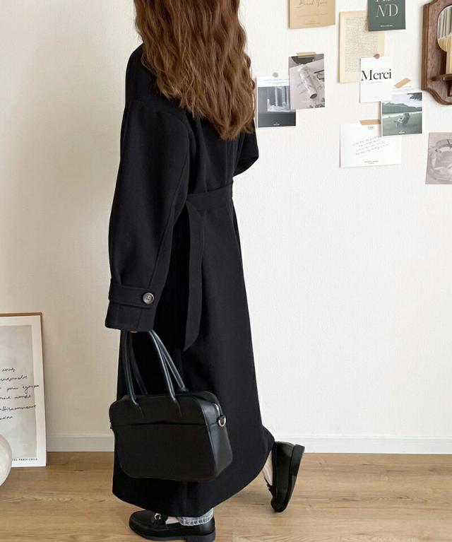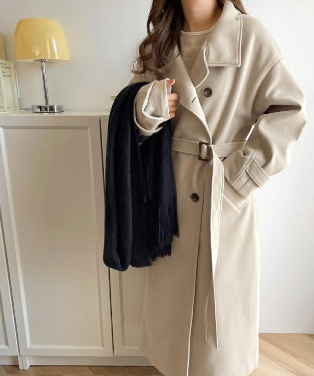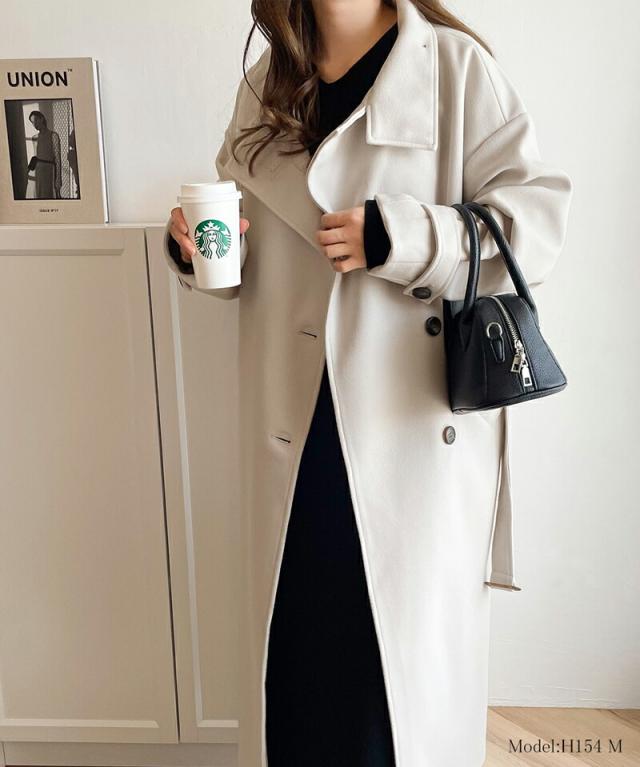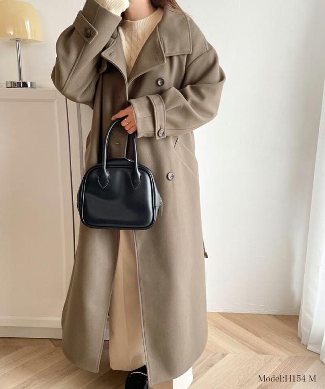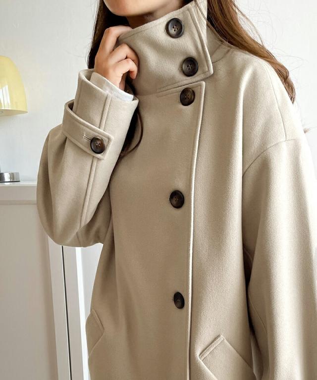 この秋冬トレンドのスタンドカラーロングコートです。