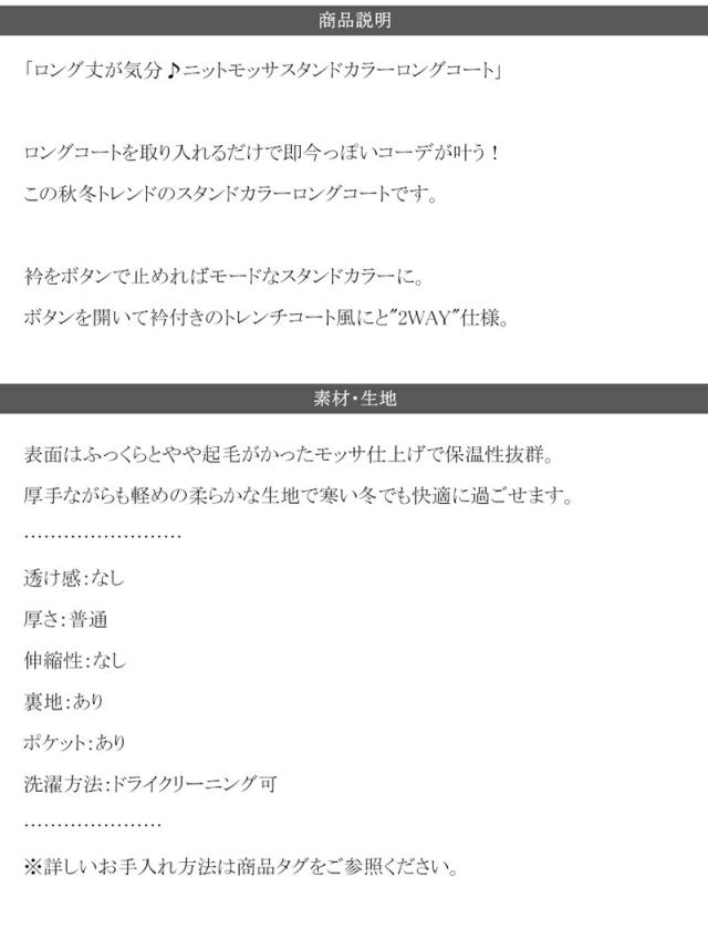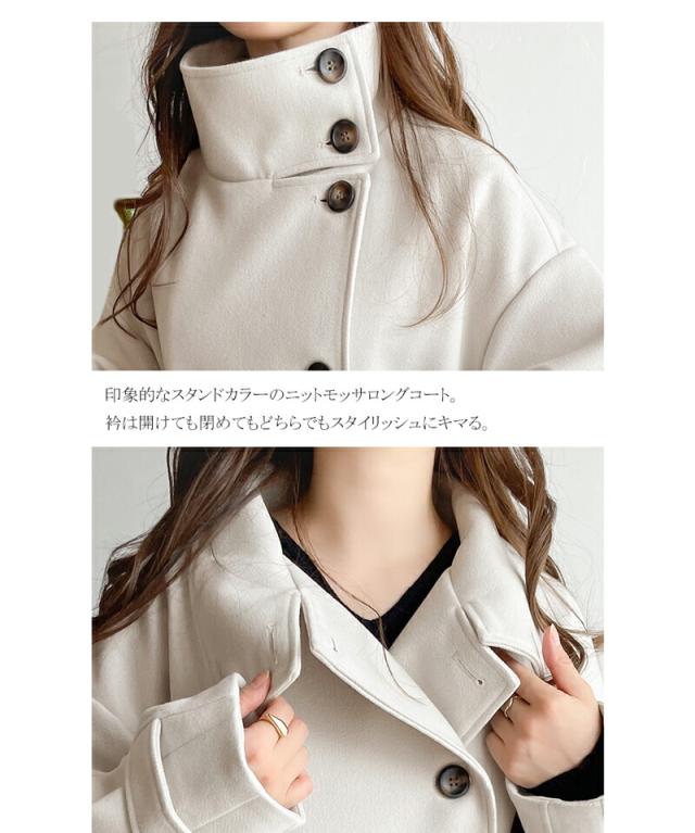 ★ロング丈が気分♪ニットモッサスタンドカラーロングコート★
