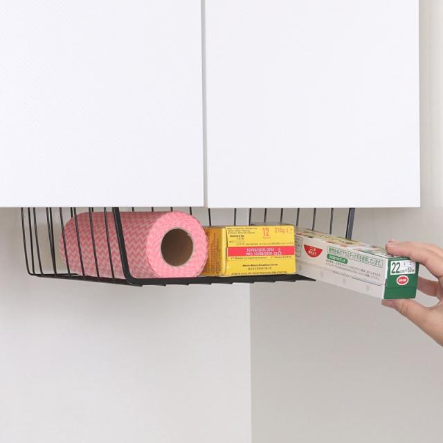 アストロ 吊り戸棚下ラック ブラック Mサイズ キッチン 吊り下げ ワイヤーバスケット ラップホルダー 収納ラック ワイヤーかご 731-29