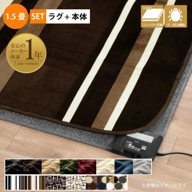 ホットカーペット 1.5畳 カバー付き 抗菌 防臭 防ダニ 2点セット 本体サイズ約128×176cm フランネルラグ (カバー:約130×185cm) メーカー1年保証 ダニ退治 省エネ 電子制御 コンパクト収納 電気カーペット 家電