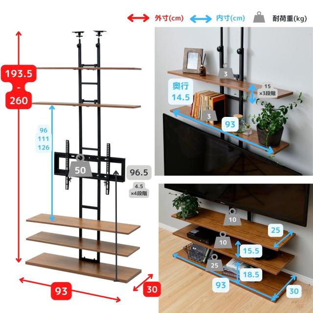 | 本体サイズ | 幅93×奥行30×高さ193.5-260cm 重量18kg |