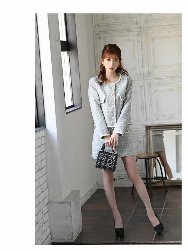 キャバスーツ Belsia.LUX ツイード フォーマルスーツ ママスーツ ツィード かわいい キャバ スーツ キャバスーツ