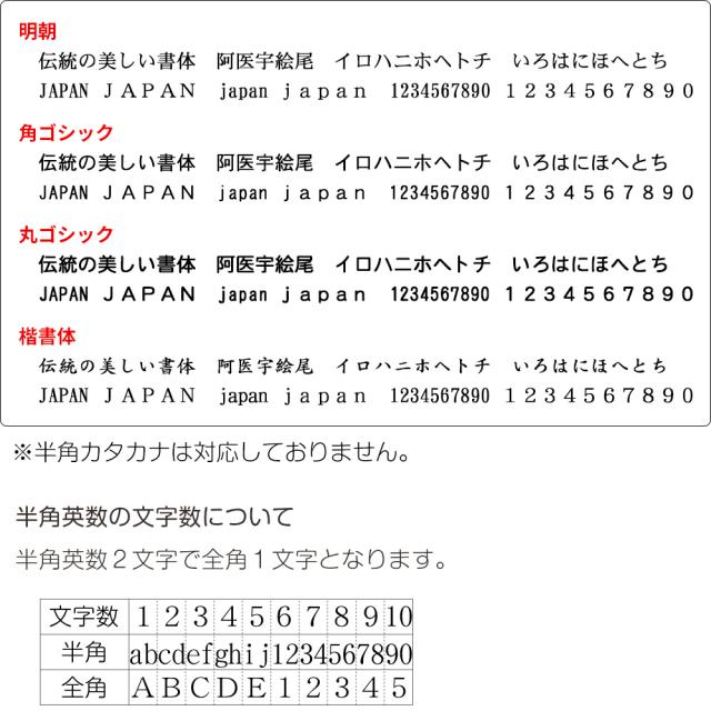 百年以上の歴史を誇る弊社の熟練した職人が数多くある書体の中から厳選した書体。そんな文字を4種類ご用意。