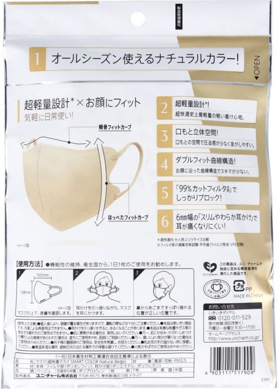 | 商品名 | 超快適 マスク SMART COLOR ナチュラルベージュ ふつう 7枚入 【×4個セット】 普通サイズ ユニチャーム ユニ・チャーム |