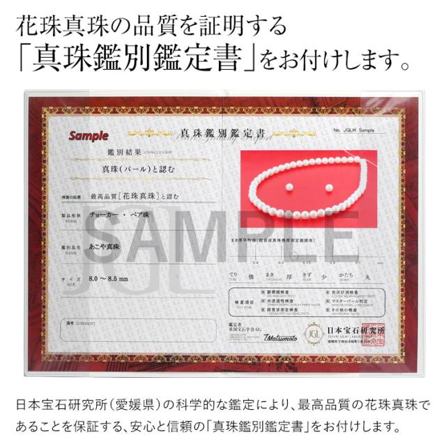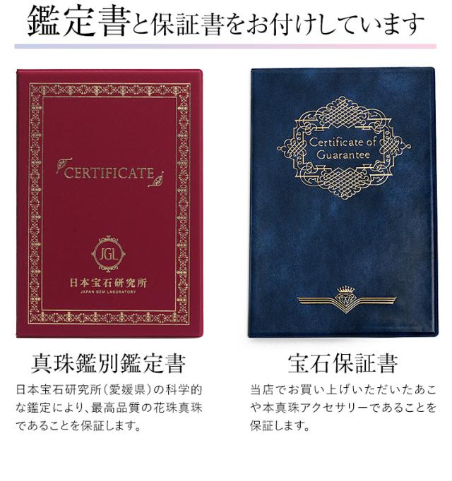 ・日本宝石研究所(愛媛県)の科学的な鑑定により、最高品質の花珠真珠であることを保証する、安心と信頼の「真珠鑑定保証書」をお付けします。