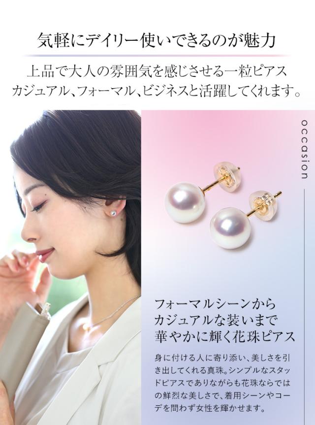 [あこや真珠 ピアス 花珠 8.0-8.5mm K18 K14WG 日本製 鑑定書・保証書付 パール パールピアス 一粒 アクセサリー レディース アコヤ真珠 真珠 ゴールド 18金 金属アレルギー 結婚式 入学式 卒業式 成人式 プレゼント ギフト ケース付 P503HN 送料無料]