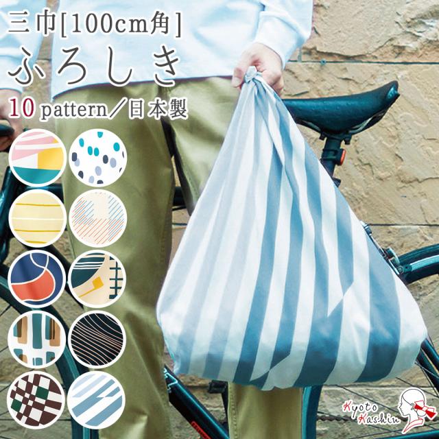 菓子折りや重箱・一升瓶などのラッピングにも使いやすい、大判の三巾(約100cm×100cm)サイズの風呂敷です。