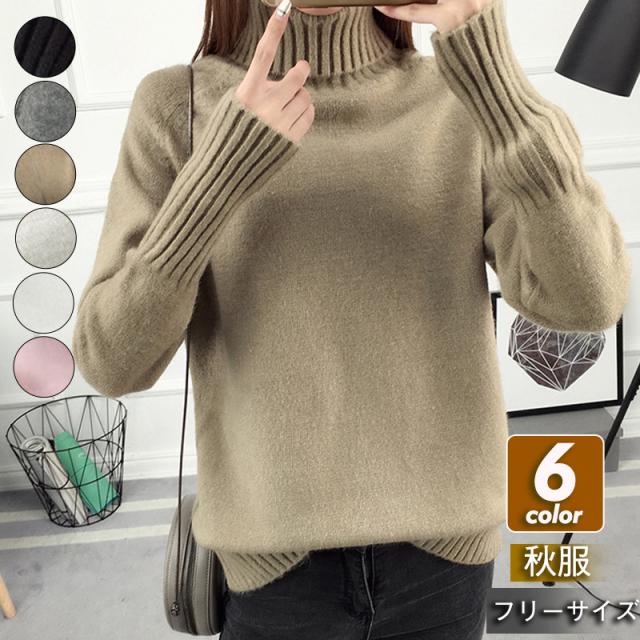 ニット レディース ニットセーター ハイネック タートルネック 厚手 インナー ゆったり カジュアル 秋冬 着痩せ 可愛い 韓国風