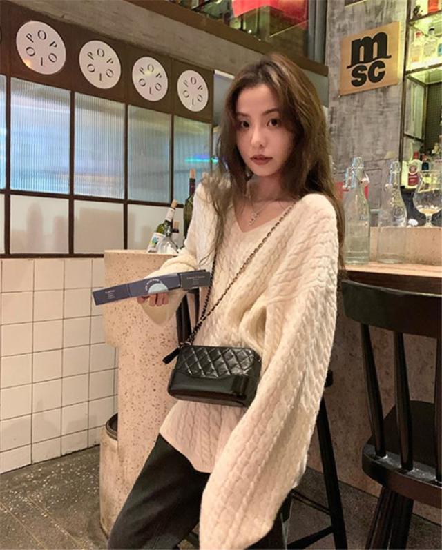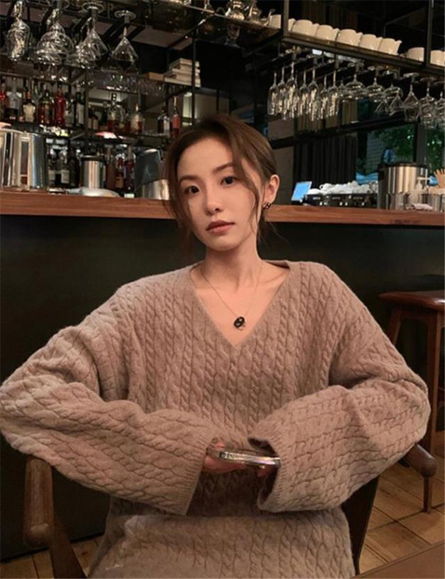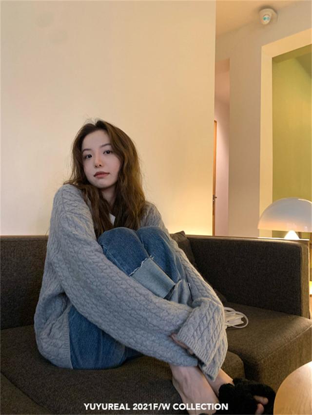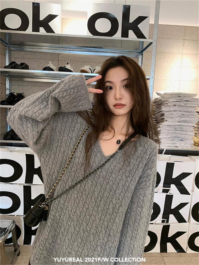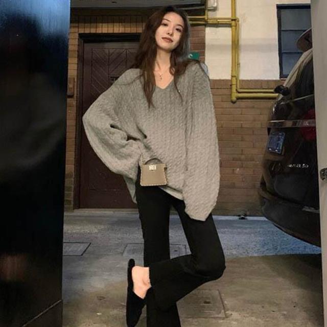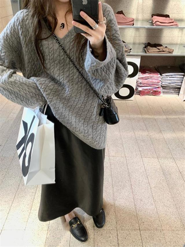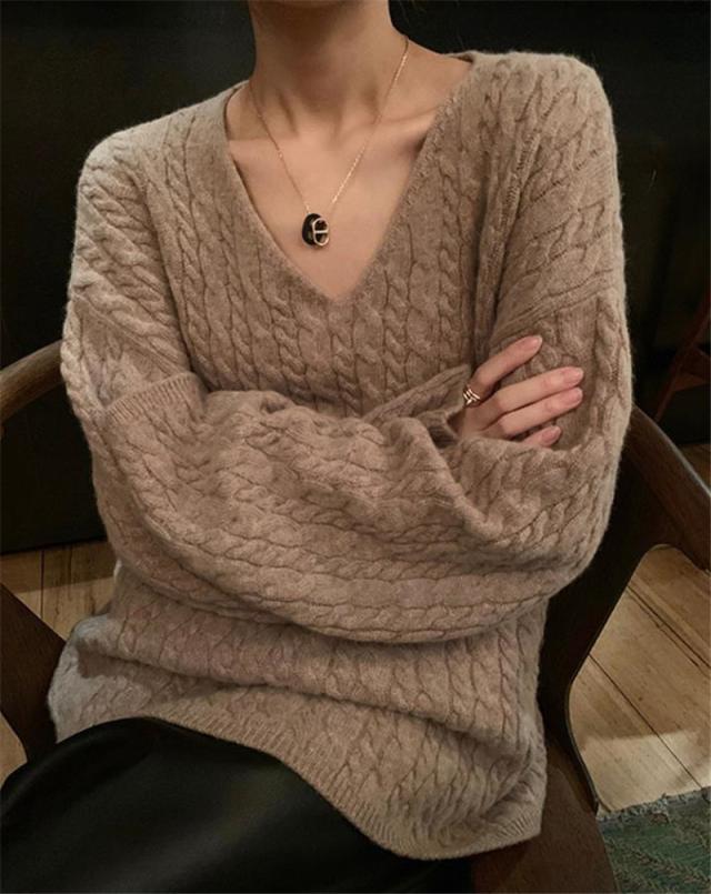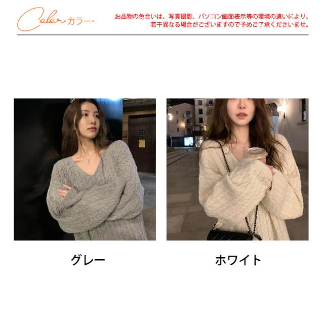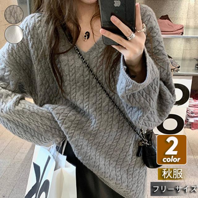 新作 ニット レディース セーター ニットセーター Vネック ケーブルニット インナー 長袖 厚手 ヴィンテージ 無地 ゆったり