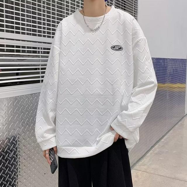 新作 トレーナー メンズ クルーネック プルオーバー ワッフル柄 スウェット Tシャツ レディース ゆったり 上着 無地 カジュア