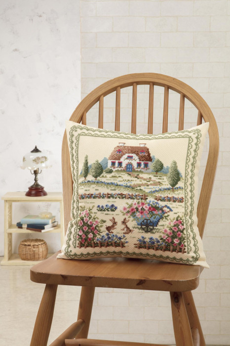 商品概要:タウン&カントリーの刺しゅうが目を引くクッションキット。