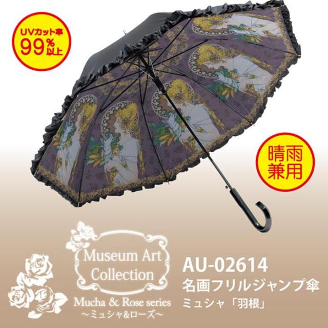 ユーパワー 名画フリルジャンプ傘 ミュシャ「羽根」 AU-02614 |b03