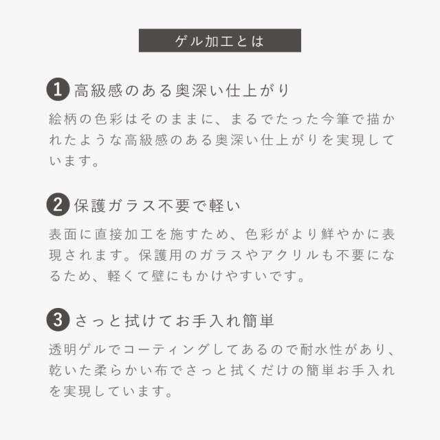 ■仕様:絵の表面を特殊ゲル加工、壁掛・卓上両用(木製丸棒足付)