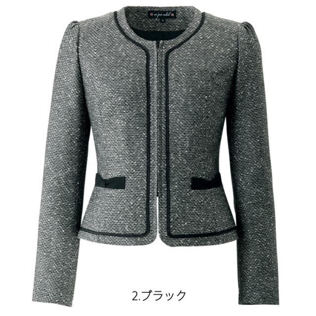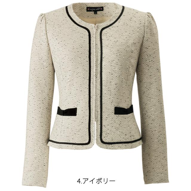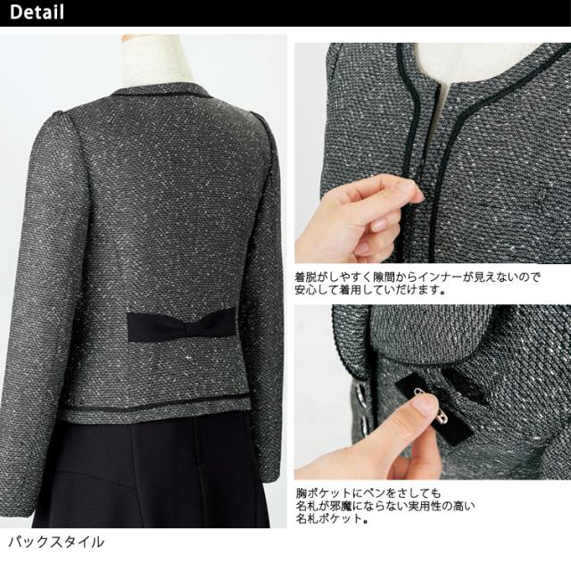 レディース ジャケット ミックスツイード ノーカラー オフィス フォーマル 人気 デート服 パイピング かわいい リボン 入学式 卒業式 面接 受験 ジョア 81680