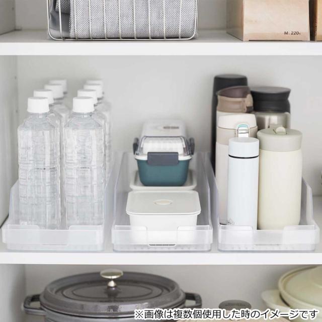 冷蔵庫の中だけでなく、食器棚やパントリー、ストックルームなどでの整理整頓にもお使いいただけます。マグボトルやお弁当、ペットボトルのストックなど、乱雑になりがちな物もスッキリと収納しておけば、使いたい時にサッと取り出して使うことができ、家事の時短にもつながります。また、複数個並べて使用すれば、見た目もスッキリするので、見せる収納などにもピッタリです。