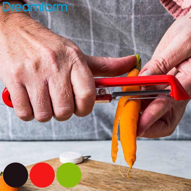 dreamfarm ピーラー 縦型 Sharple ( ドリームファーム 皮剥き器 皮むき器 I型ピーラー 縦型ピーラー コンパクト 左利き シャープナー機能 切れ味抜群 食洗機対応 お手入れ簡単 持ち運び 芽取り付き カバー付き )