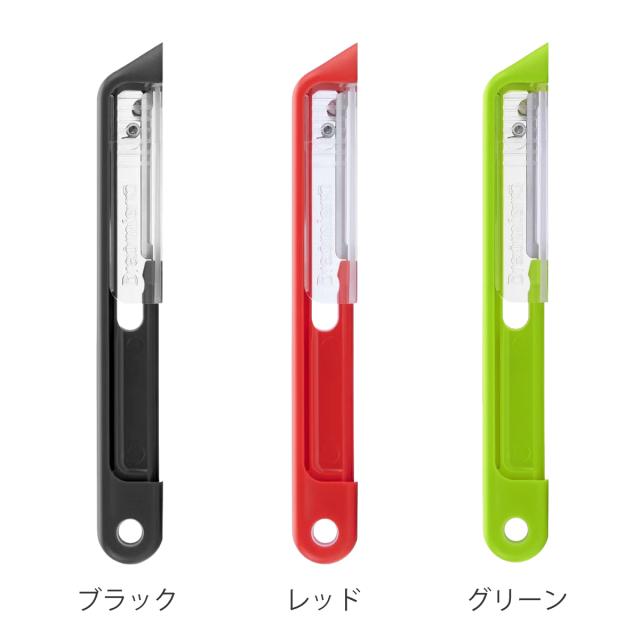 スライド式の安全カバーにセラミックボールを組み込んでおり、カバーを開閉する度に刃が整えられ、鋭い切れ味を保ちます。刃は日本製なので、切れ味抜群です。