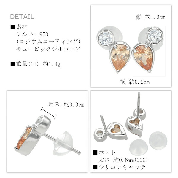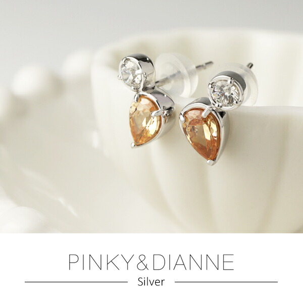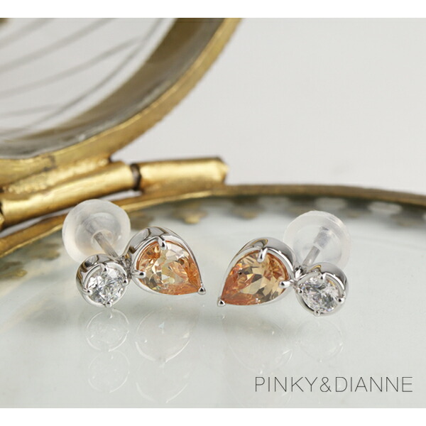 ピンキー&ダイアン オレンジ キュービック ジルコニア スタッドピアス 2P 両耳用 シルバー950 ピアス シンプル ドロップ 雫 しずく 橙