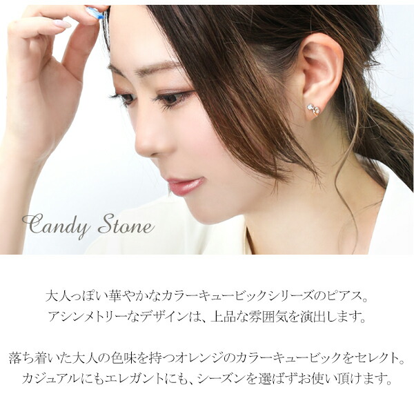 大人っぽい華やかなカラーキュービックシリーズのピアス。