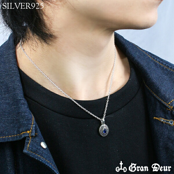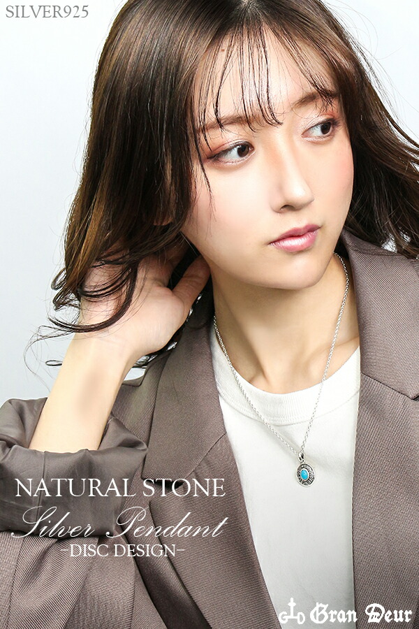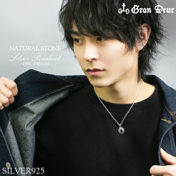 GRAN DEUR 円盤 6種の天然石 シルバーネックレス ターコイズ サンゴ サファイア オパール ルビー シルバーアクセサリー メンズ ネックレス