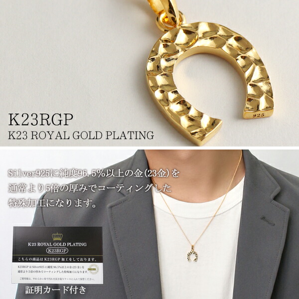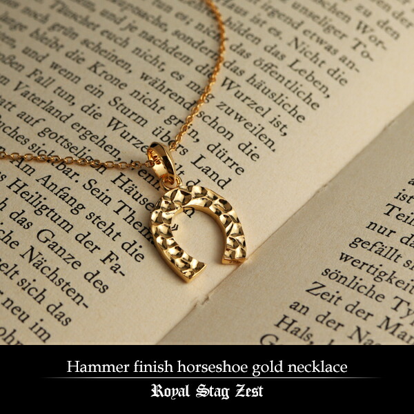 刻印無料 K23RGP 槌目 馬蹄 ネックレス ゴールドコーティング 23金 ネックレス ホースシュー 蹄鉄 蹄 馬 ハンマー デコボコ ブランド Royal Stag ZEST ロイヤルスタッグ
