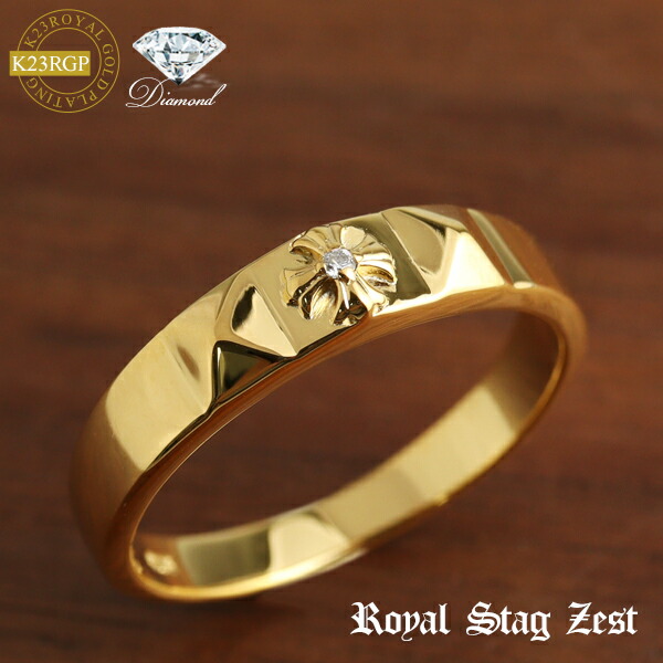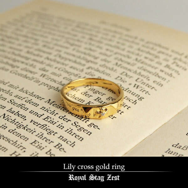 K23RGP リリークロス ダイヤモンド リング 9〜23号 ゴールドコーティング 23金 指輪 百合 十字架 クロス スタッズ ブランド Royal Stag ZEST ロイヤルスタッグ