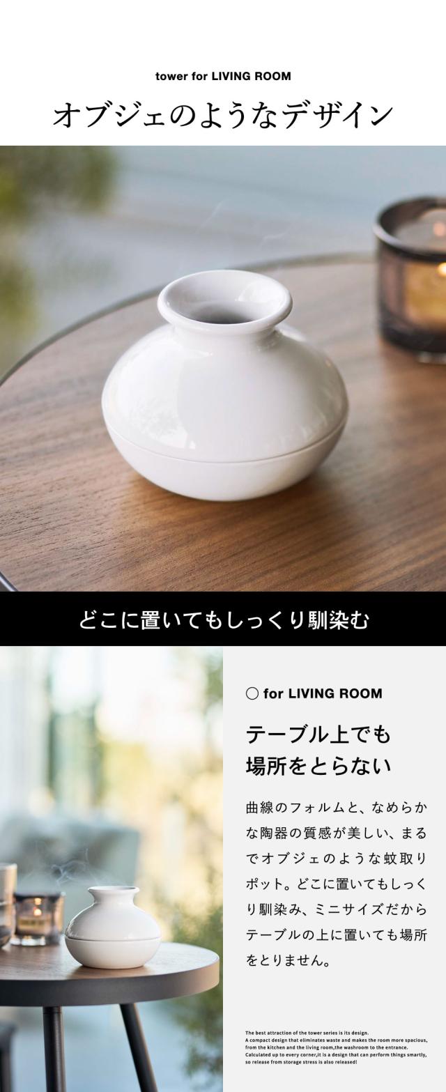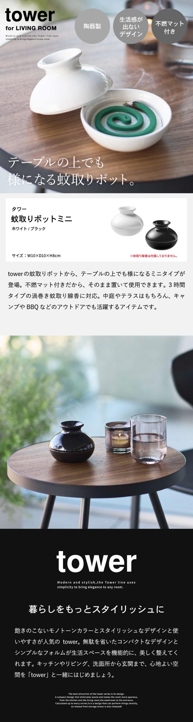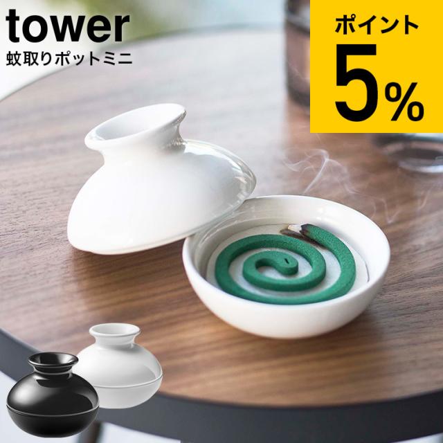 tower 山崎実業 蚊取りポット ミニ タワー ホワイト ブラック 5744 5745 蚊取り お香立て 蚊取り線香 お香 オブジェ エントランス 玄関 リビング 虫よけ ベランダ 庭 陶器 モダン インテリア おしゃれ タワーシリーズ 誕生日プレゼント