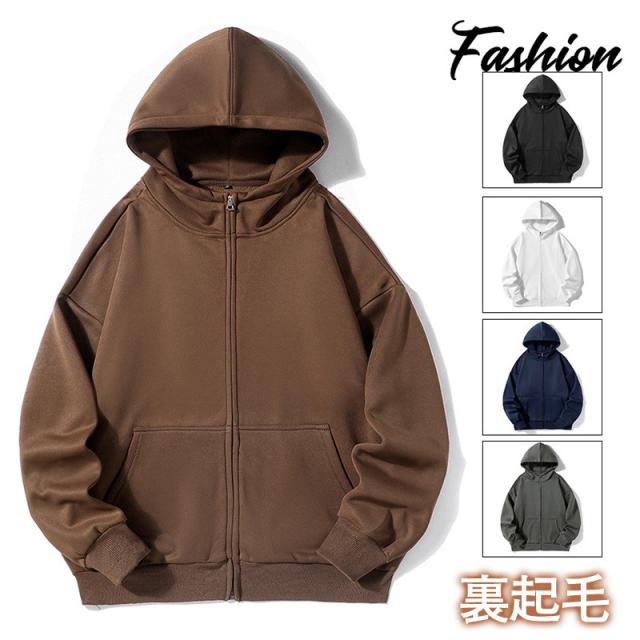 パーカー メンズ ジャージ 裏起毛 前開き ジャケット シンプル 無地 ジッパー プルオーバー フード付き マウンテンパーカー 防