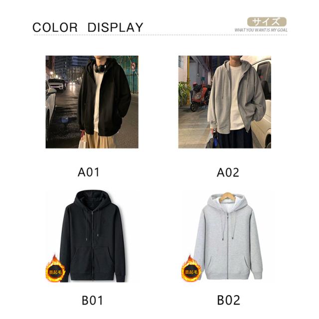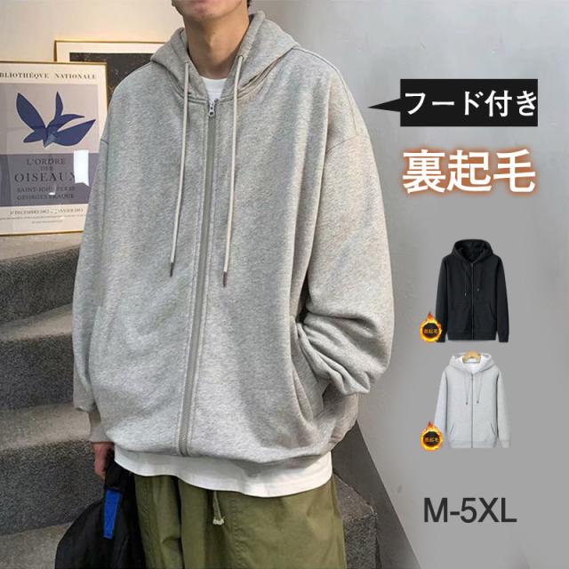 パーカー メンズ ジャージ 裏起毛 前開き ジャケット シンプル 無地 ジッパー プルオーバー フード付き マウンテンパーカー 防