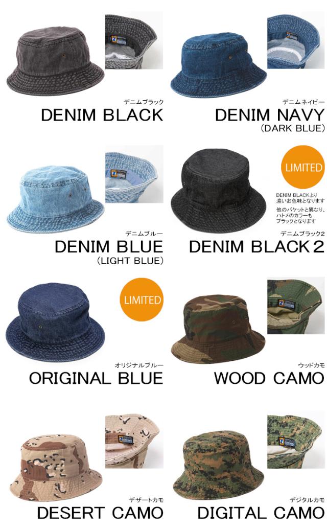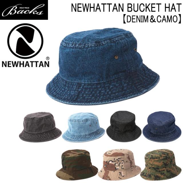 バケットハット NEWHATTAN デニム カモ バケット ハット S/M L/XL バケハ 帽子 メンズ レディース ニューハッタン ツイル 無地 シンプル 日差し UV 休日 旅行 フェス バーベキュー BBQ 綿 コットン bucket DENIM&CAMO