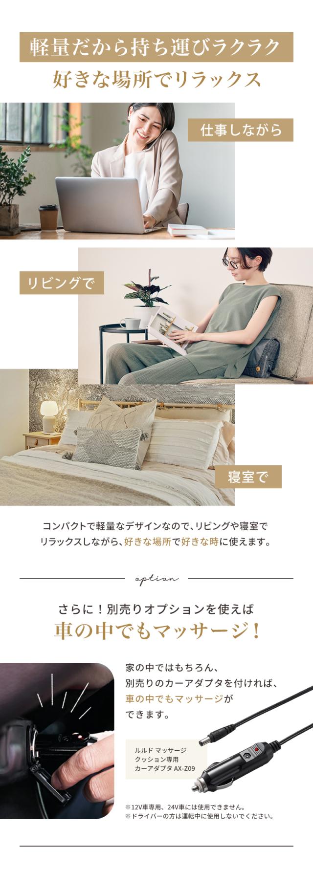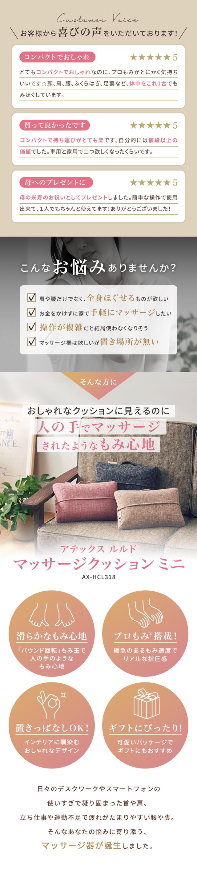 【公式】ルルド マッサージクッション ミニ AX-HCL318 マッサージ器 肩こり 腰 首 肩 背中 ふくらはぎ 脚 マッサージ機 マッサージャー クッション コンパクト 小型 軽量 リラックス 癒し 血行 プレゼント ギフト 実用的 健康 電動 2025 クリスマス 沖縄・離島追加請求あり