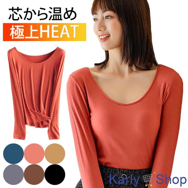 長袖インナー レディース 発熱インナー 肌着 アクリル あったか 柔らか 暖かい 襟ぐり広め 丸首 保温 防寒 秋冬 女性用 下着 黒 茶 青 a0326
