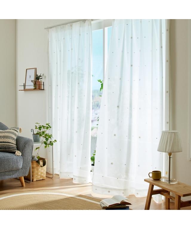 遮像レースカーテン(フラワー刺繍)
