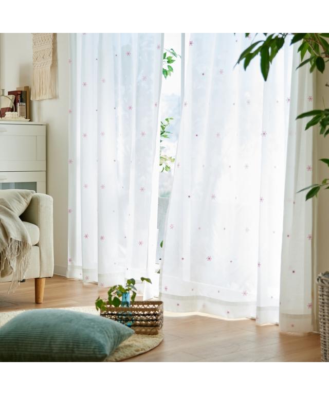 カーテン 遮像 レース フラワー刺繍 ピンク/ベージュ 幅100×長さ108cm×2枚 ニッセン nissen