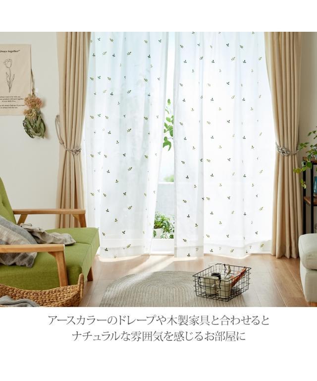 カーテン 遮像 レース リーフ刺繍 幅100×長さ176cm×2枚/幅200×長さ176cm×1枚 ニッセン nissen