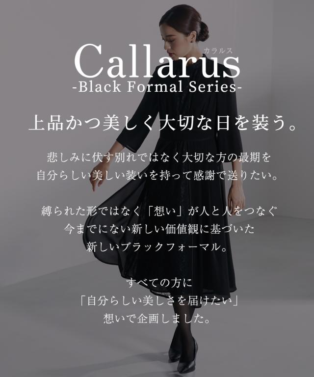 【Callarus(カラルス)】 〜for Black Formal〜まっすぐブレない美しさで人々を魅了する花“calla lily”とラテン語で輝くという意味の“clarus”を合わせた造語がブランド名の由来です。<自分らしく上品で美しい装いを大切にする方へ>縛られたカタチではなく、「想い」が人と人をつなぐシーンにもテイストにも年齢にも縛られない自由な着こなしを実現する新しいブラックフォーマル。 こだわりポイントフロントレースとサテンパイピングが綺麗な縦の流れを演出スタンドカラーデザインで、モード感のあ