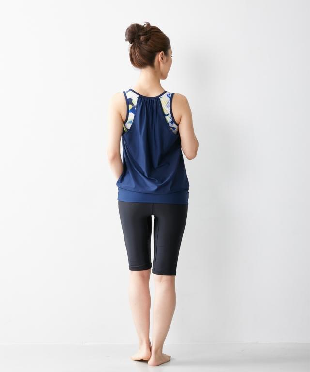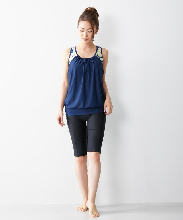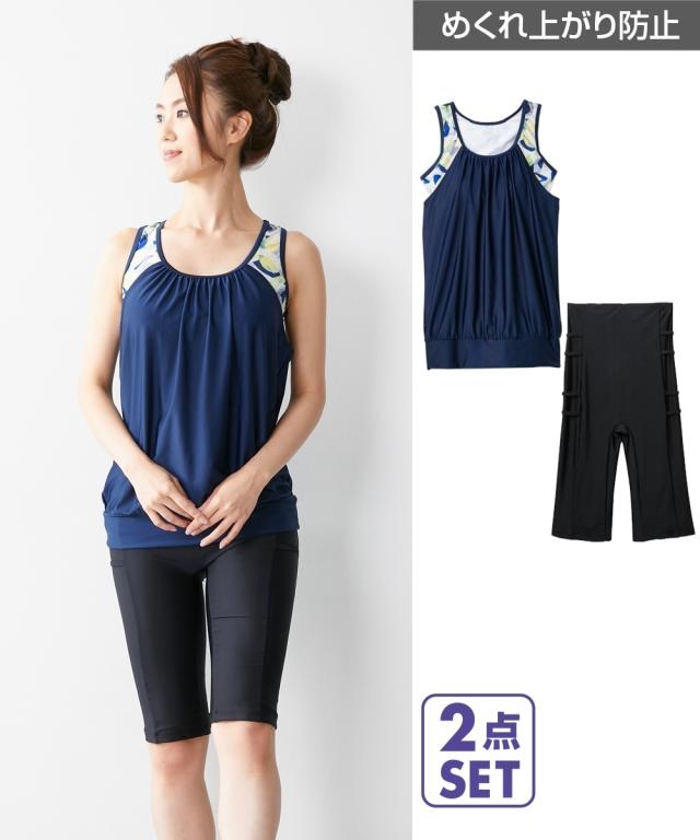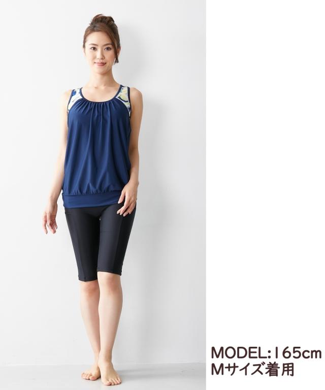 水着 レディース ブラ一体型 タンクトップ 2点セット ネイビー/ブラック S/M ニッセン nissen